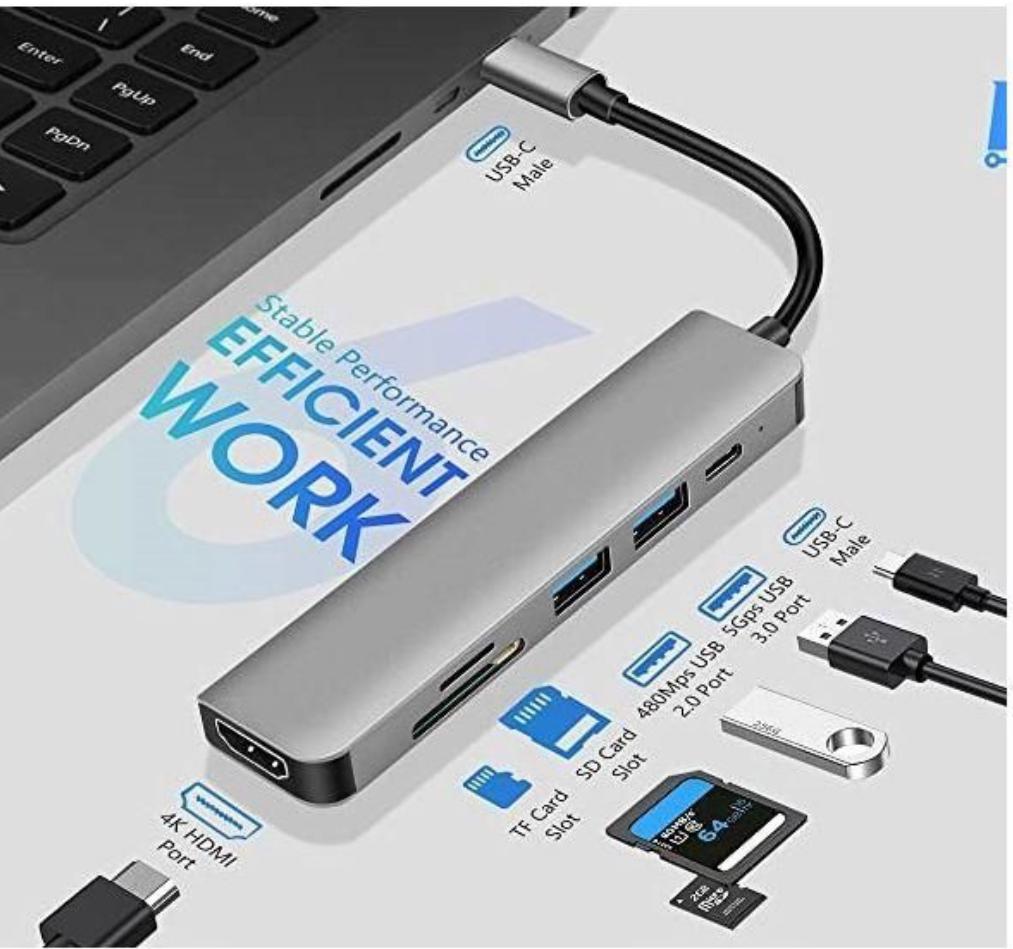 Adaptateur Multiport Type C 6 IN 1-HDMI 4K, Port USB 3.0,SDTF